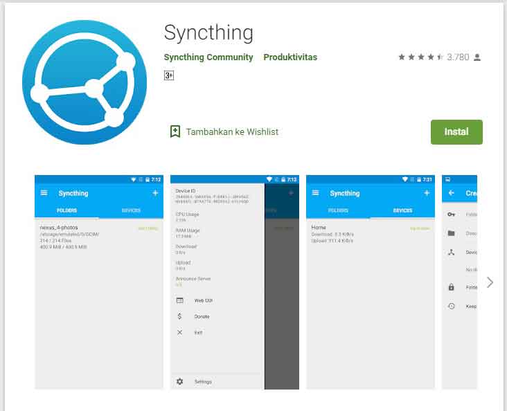 Yang terakhir ada nama Syncthing sebagai salah satu dari 6 aplikasi untuk mentransfer file terbaik dari android ke PC yang tentunya bsia sobat coba, Syncthing ini merupakan salah satu aplikasi berbasis open source yang tentunya bisa dikembangkan secara bebas oleh siapapun, aplikasi ini juga bisa menjadi salah satu alternatif atau opsi bagi sobat yang ingin menoba aplikasi penyimpanan diluar cloud storage, soal keamanan data yang diunggah Syncthing menjamin keamanan data pengguna nya.