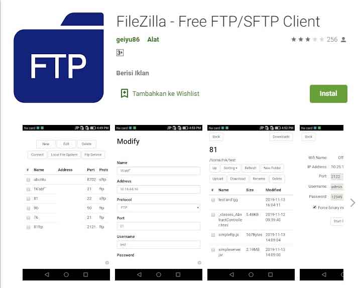 Ketiga ada nama FileZilla didalam daftar 6 Aplikasi Untuk Transfer File Terbaik dari Android ke PC yang bisa sobat coba, sedikit berbeda dengan 2 aplikasi sebelumnya FileZilla ini merupakan aplikasi aplikasi server-klien FTP terbaik yang bisa digunakan juga untuk android, bagi yang belum pernah menggunakan aplikasi ini mungkin akan terlihat sedikit rumit tetapi sangat mudah dalam pengopreasiannya.