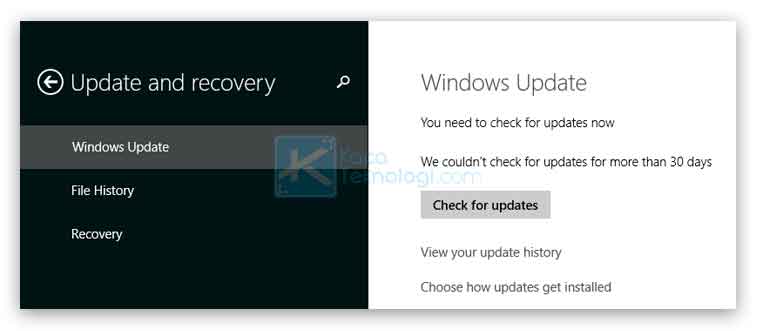 - Selanjutnya klik Check for updates dan terakhir ikuti instruksi yang diberikan Windows sampai selesai.