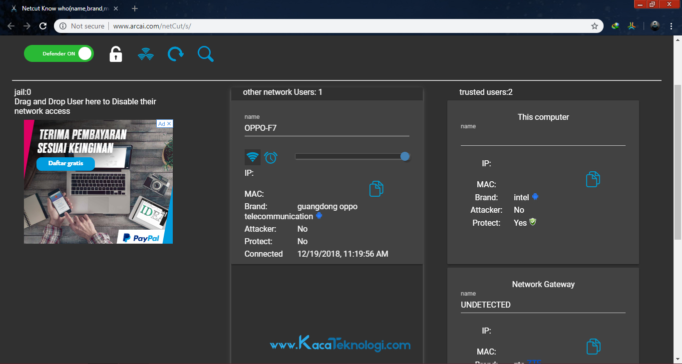 Gambar perangkat yang terkoneksi pada jaringan dalam NetCut. |