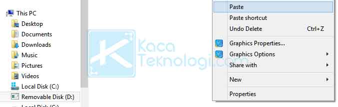 7. Kita pergi lagi ke flashdisk, silakan Anda tekan CTRL + V untuk memindahkan file yang sudah Anda copy tadi.