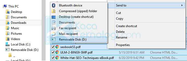 Cara memindahkan file ke flashdisk dengan cara copy paste, CTRL + C & CTRL + V, sent to, drag & drop dan cara memindahkan beberapa file sekaligus ke flashdisk