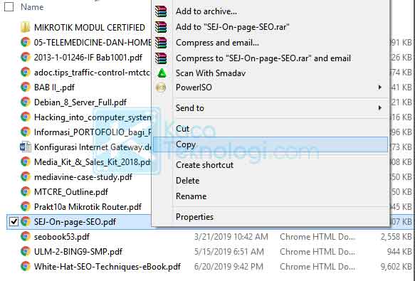 6. Klik kanan pada file tersebut, kemudian klik Copy
