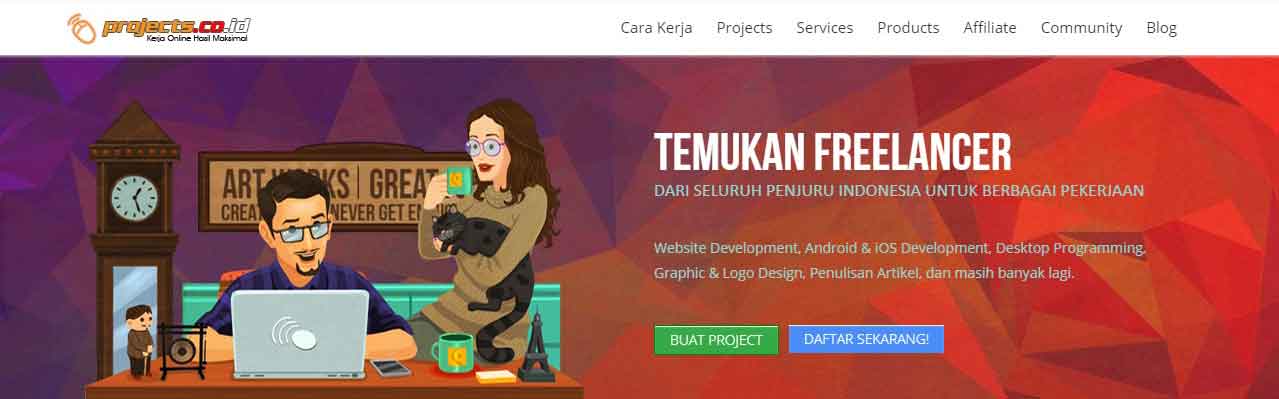 Berikutnya ada nama Project.co.id salah satu situs freelancer asal kota Bandung yang menyediakan berbagai macam jenis pekerjaan untuk para pekerja lepas situs ini bisa diakses dari seluruh penjuru Indonesia dan terbuka bagi siapapun yang sedang melihat peluang sebagai pekerja lepas.