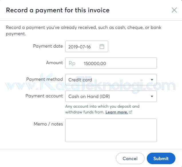 - Jika sudah maka daftar invoice yang belum dibayar akan hilang pada dasbor karena sudah dianggap selesai (terbayar / lunas).